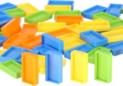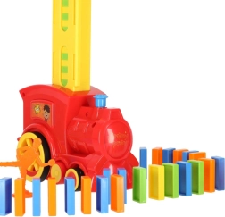 Ta barvita lokomotiva z dozirnikom ploščic sama polaga domino v stalnih razdaljah, vsak položaj pa naznani z zvokom. Otroci lahko smer vožnje enostavno izberejo z obračanjem dimnika in tako ustvarjajo raznolike poti in vzorce. Žive barve in privlačen dizajn pritegujejo pozornost in motivirajo k dolgi igri.