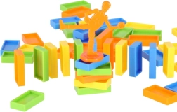 Set vsebuje: barvito lokomotivo, dozirnik ploščic, 80 kosov domina in plastični kaktus kot oviro.