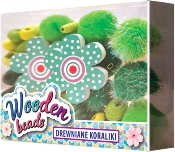 Ustvarite svoje edinstvene lesene nakitne kose s tem ustvarjalnim setom za otroke od 4. leta dalje. Vsebuje majhne zelene lesene bisere, pompone, lesene obeske v obliki cvetov in voskano vrvico – idealno za zapestnice, ogrlice ter razvoj fine motorike in ustvarjalnosti.