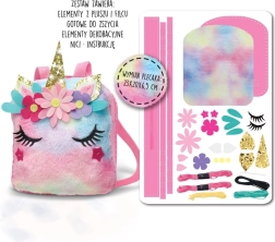 Komplet za šivanje – nahrbtnik s samorogom – je idealna ideja za prosti čas. S tem kompletom si lahko vsako dekle sešije nahrbtnik približnih dimenzij 23 cm x 20 cm x 6,5 cm, ki bo popoln modni dodatek. Komplet vsebuje: filcane in plišaste elemente, pripravljene za šivanje, okrasne elemente, nit, plastično iglo in navodila.