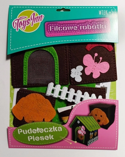 Odkrijte čar filc izdelkov in ustvarite lastne dekoracije za sobo. Ta kreativni komplet vam omogoča, da sešijete večjo škatlico v obliki hišice in manjšo kvadratno škatlico s prikupnim kužkom. Komplet je zasnovan tako, da je šivanje varno in zabavno – uporablja se plastična igla in bombažne niti.