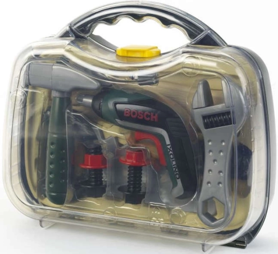 Otroški kovček z orodjem iz licenčne serije BOSCH Mini znamke KLEIN ponuja realistično igro popravljanja. V notranjosti je akumulatorski vijačnik Ixolino II na baterije z vrtenjem v desno/levo in zvokom motorja, dopolnjen z drugimi trpežnimi orodji. Trden temno zelen kovček s prozornim pokrovom in dvema rdečima zapirala varno drži vse na mestu in je idealen za male mojstre od 3 let dalje.