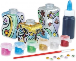 Del pakiranja so 3 vaze, pripravljene za okraševanje, čopič, okrasni kamenčki in modelirna masa za obrisovanje oblik. Otroci bodo uživali v ustvarjalnem procesu in čudovitem rezultatu, ki bo okrasil sobo ali razveselil kot darilo.