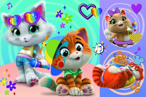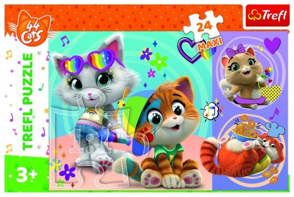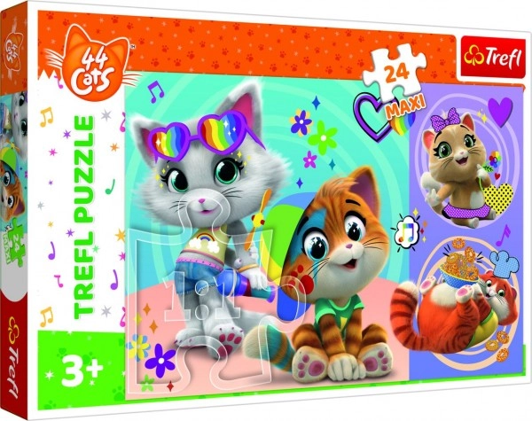 Maxi sestavljanka je sestavljena iz 24 trdnih in enostavno oprijemljivih kosov, ki so prilagojeni malim otroškim rokam. Priljubljen motiv Srečnih muc iz 44 CATS otroke spodbudi k sestavljanju ter podpira njihovo osredotočenost, potrpežljivost in zaznavanje oblik ter barv.