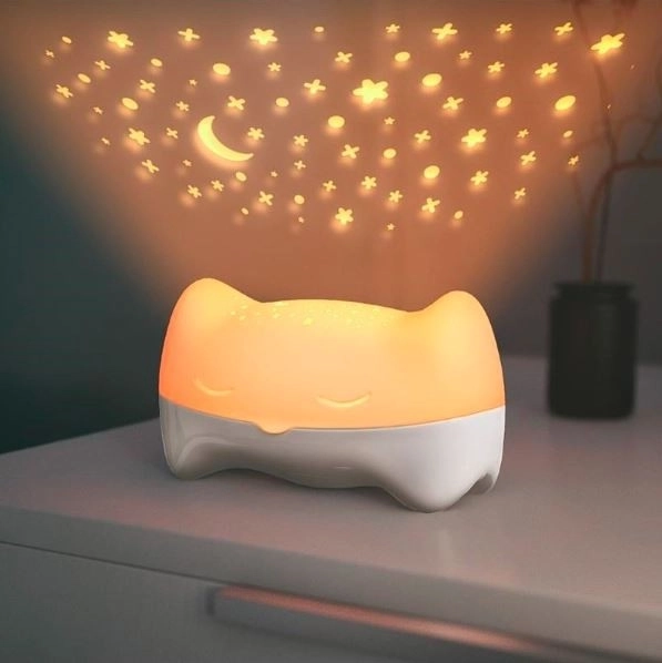Projektor ponuja 6 pomirjujočih zvokov, vključno s tremi uspavankami in mehkimi zvoki narave, ki otrokom pričarajo občutek varnosti in miru.