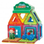 S sestavljanko Magformers Mestece Tržnica lahko po lastni domišljiji gradite različne arhitekturne zgradbe. Vsebuje 14 magnetnih oblik in 8 funkcionalnih dodatkov, vključno z majhno prodajalko, ki omogočajo ustvarjanje polodprtih prerezov, kjer so z ene strani vidne zunanje konture zgradbe, z druge pa notranja ureditev.
