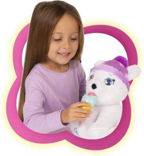 Poluš je interaktivni polarni medved, ki je zelo prisrčen. Izdelan je iz mehke, prijetne plišaste tkanine in ima ljubke kristalne oči z bleščicami. Oddaja 10 zvokov! Ko poje sladoled iz kompleta, se mu začne slabšati in trese se od mraza. Poskrbite zanj in ga božajte, pa se bo takoj počutil bolje!