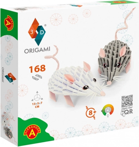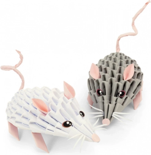 Ta zabaven in poučen komplet ORIGAMI 3D – miški je odličen uvod v modularni origami. V paketu najdete vse potrebno za sestavljanje dveh podrobnih figuric: bele in sive miške z ušeski, repki in očmi iz priloženih nalepk. Zaradi pametne zasnove delov se moduli povezujejo brez lepila, zato je zlaganje čisto, pregledno in primerno tudi za začetnike.