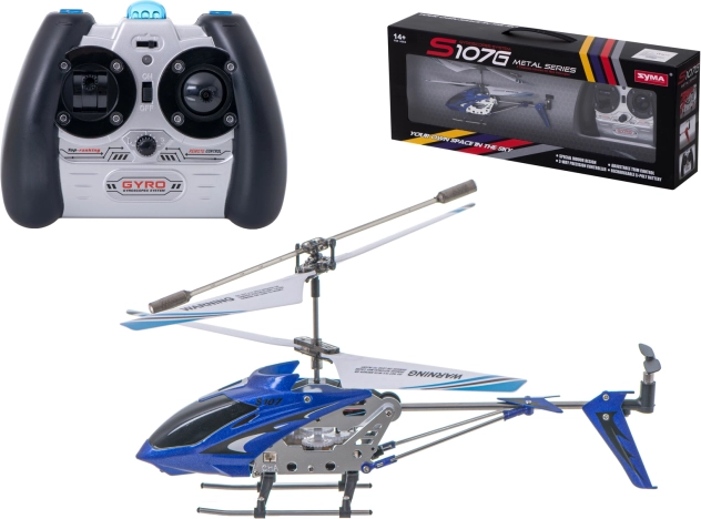 SYMA S107G sodi med najpriljubljenejše mikro helikopterje za začetnike in navdušence. Kovinska konstrukcija v kombinaciji z vzdržljivim ABS dobro prenaša padce, medtem ko izboljšani žiroskop ohranja helikopter stabilen brez neželenega vrtenja. Zaradi kompaktnih mer je model kot ustvarjen za letenje v notranjih prostorih.
