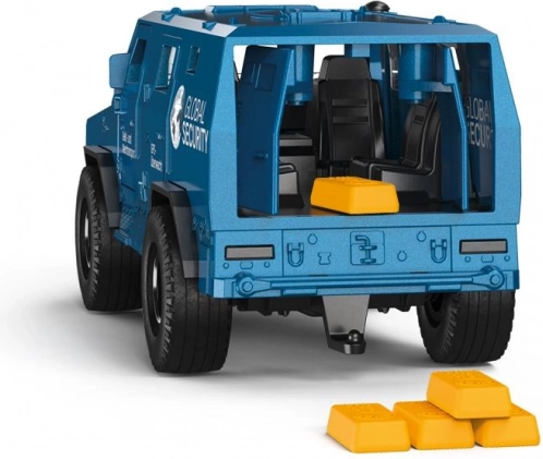 Model je odličen za razvoj domišljije in pripovedne igre – od spremljave banke do tajnih misij. Bleščeč lak, potisk GLOBAL SECURITY in realistična razmerja naredijo to vozilo privlačen kos za igro in razstavo. V pakiranju so lahko priloženi tematski dodatki, na primer “zlate palice”, za še boljšo igralno izkušnjo.