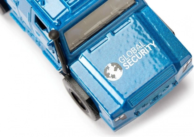 Ta modri varnostni transporter v merilu za otroško igro izstopa po robustni kovinski izdelavi in avtentičnih detajlih karoserije – maska, žarometi, ročaji in vtisi panelov. Zahvaljujoč prosto vrtečim se kolesom je pripravljen na dinamično vožnjo po tleh ali igralnih stezah. Premišni elementi razkrijejo notranjost s sedeži in tovorni prostor za “dragocen tovor”.
