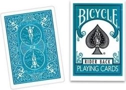Karte Bicycle sodijo med najbolj cenjene na svetu že od leta 1885. Edinstven papir in posebna površina Air‑Cushion Finish zagotavljata gladko drsenje, enostavno mešanje in daljšo življenjsko dobo. Nova izvedba s turkiznim hrbtom in škatlico pritegne na prvi pogled ter je odlična za vizualne efekte.
