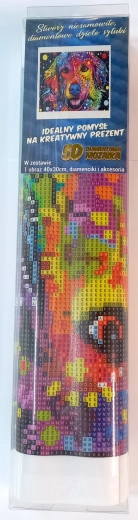 Ta celovit komplet za diamantno slikanje je idealen za sprostitev ali ustvarjanje z otroki. S pomočjo aplikacijskega peresa postopoma prenašate drobne kamenčke na predtiskano platno in ustvarite efektno, bleščečo sliko z modernim motivom abstraktnega psa. Končano delo lahko preprosto uokvirite (okvir ni priložen).
