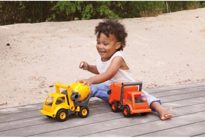 Praktične funkcije, kot so vrteči boben, dvižna kabina in varnostno varovalo proti neželenemu prevrnitju, naredijo ta mešalnik odličnega sopotnika za domišljijsko igro. Kompaktne mere in robustna kolesa zagotavljajo gladko vožnjo po različnih podlagah, tako na tleh v sobici kot tudi zunaj na terasi ali vrtu.