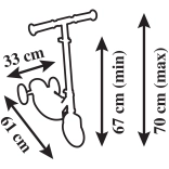 - Prilagoditev otroku: po višini nastavljivo krmilo (pribl. 67–70 cm).