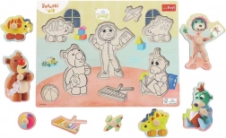 Lesena sestavljanka z motivom BOBASKI I MIŚ je zasnovana za najmlajše. Čvrsti deli z velikimi lesenimi gumbi so enostavni za držanje tudi za majhne ročice. Podlaga z izrezanimi oblikami in ujemajočo se črno-belo grafiko pod deli otroku olajša pravilno ujemanje oblik in spodbuja njegovo samostojnost pri igri.