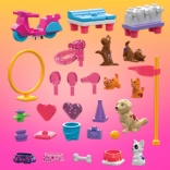 Sestavljanka MEGA Barbie Color Reveal prinaša svet poln skrivnosti in zabave. Z več kot 15 presenečenji se otroci potopijo v svet domišljije in ustvarjalnosti, razpakirajo mikro punčke in doživijo barvita razkritja. Sestavite lahko vadbeni poligon, kjer se živalice naučijo novih trikov, ter negovalno postajo, da svojim ljubljenčkom zagotovite najboljšo oskrbo. Odlično zabavo dopolnjuje gradnja skuterja za izlete z živalicami.
