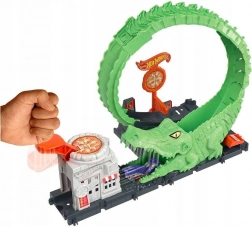 Tematski set Hot Wheels s krokodiljo zanko prinaša akcijo polno napetosti – izstrelite avtomobilček iz picerije, švignite skozi krokodiljo čeljust in obvladujte vertikalno zanko do ciljnega tarčnika. Otroci bodo uživali v neskončnih kreativnih zgodbah in spopadih s pošastjo, ki spodbujajo domišljijo in spretnost.