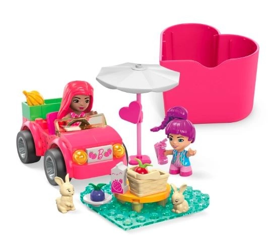 Set MEGA Barbie Color Reveal prinaša zabavo, polno skrivnosti in domišljije. Vsaka mikro punčka ima skrit videz, ki čaka na razkritje, poleg tega pa vas razveseli tudi z dišečimi presenečenji. Sestavite stilski rožnati kabriolet, posadite punčki vanj in uživajte v čarobnem pikniku z dvema prikupnima zajčkoma.