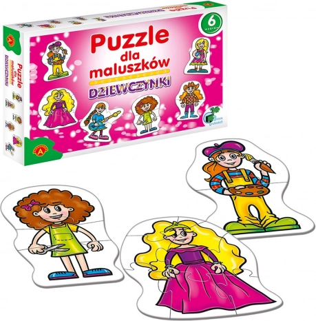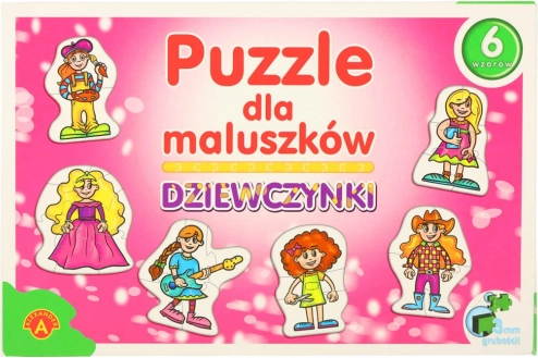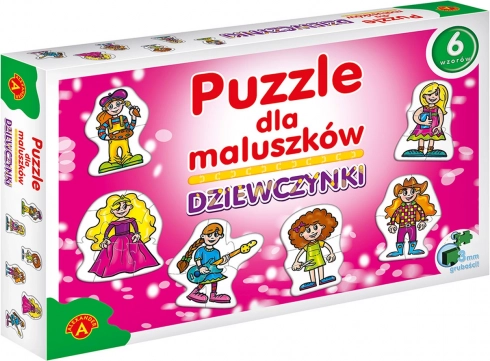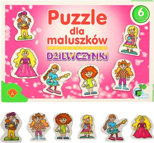 Komplet vsebuje skupaj 27 koščkov, razdeljenih na 6 slik s tematiko za punčke. Zaradi 3 mm debeline so koščki enostavni za držanje z malimi rokicami in se lepo prilegajo. Odlično kot darilo in kot aktivnost za skupno igranje s starši.