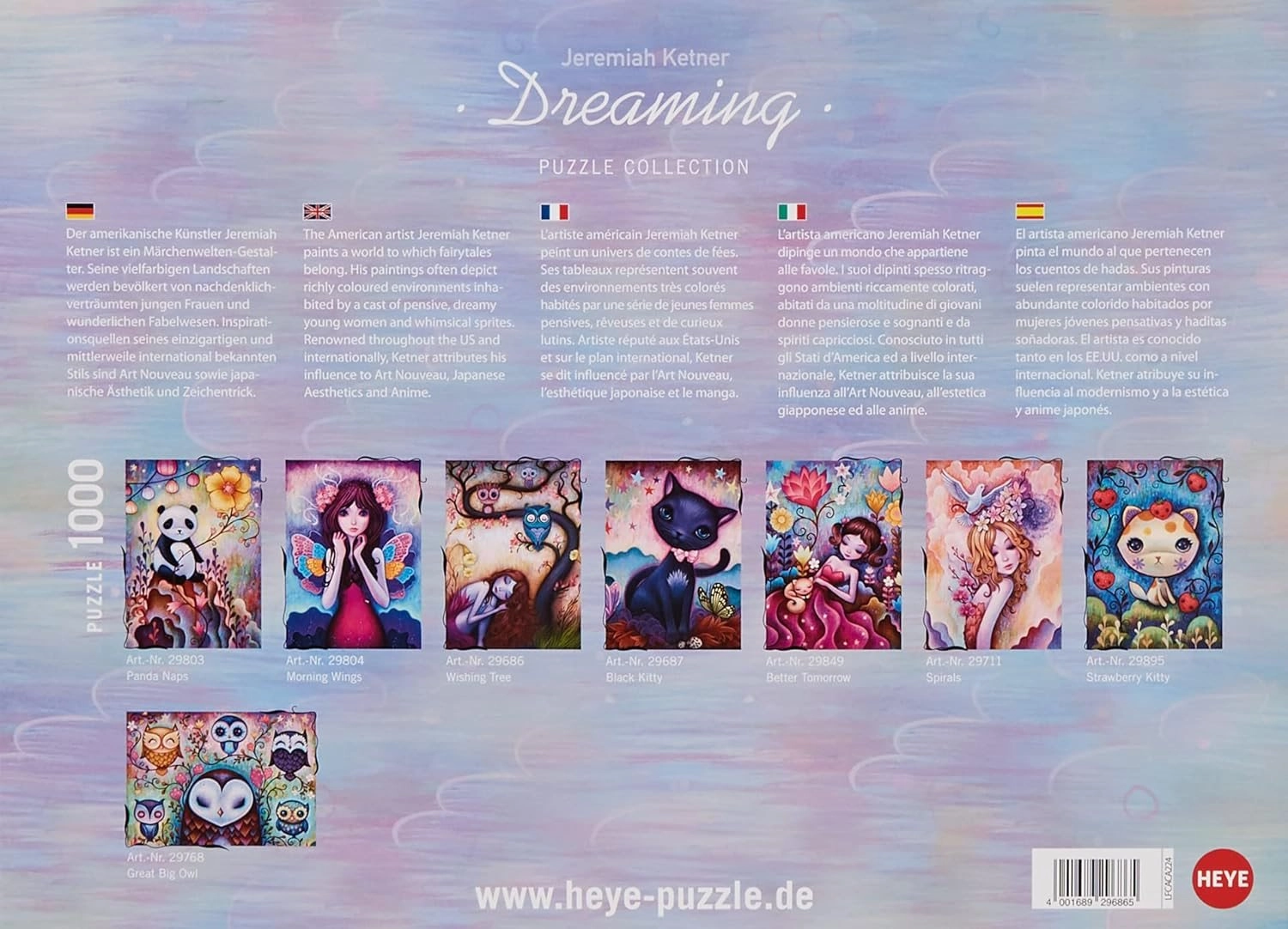 Potopite se v poetično vzdušje kolekcije HEYE Dreaming. Podoba »Drevo želja« mednarodno priznanega ameriškega slikarja Jeremiah Ketnerja vas bo očarala z nežnimi detajli, harmoničnimi barvami in sanjsko kompozicijo. Sestavljanka s 1000 koščki ponuja odličen izziv za ljubitelje umetnosti in sestavljanja.