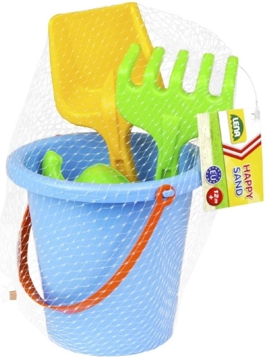 - Popolna oprema: vedro 16 cm / 1,4 l, lopatka, grabljice, 3 modelčki