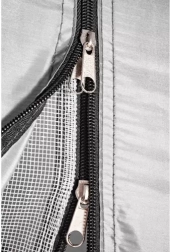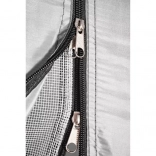 Šotor je opremljen s praktično streho, ki ščiti vaše stvari pred dežjem. Mreža proti komarjem zagotavlja zaščito pred insekti in prosti pretok zraka. Pravilno prezračevanje podpira tudi vrhnji ventil z mrežo proti komarjem, ki ga je mogoče zaščititi pred dežjem.