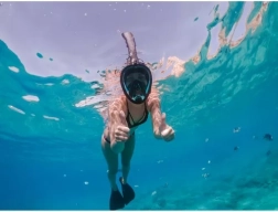 Celoobrazna maska za snorkljanje združuje udobje in odlično vidljivost. Zasnova z veliko ukrivljeno šipico prinaša panoramsko 180° vidno polje, zato vam ne uide nobena podrobnost. Inovativen sistem pretoka zraka omogoča povsem naravno dihanje skozi nos in usta, medtem ko tehnologija Anti-Fog preprečuje megljenje tudi pri daljši uporabi.