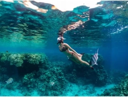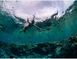 Dihajte naravno skozi nos in usta ter uživajte v panoramskem pogledu. Velika ukrivljena leča razširi vidljivost in poveča užitek v podvodnem svetu brez megljenja.