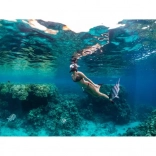 Napredno prezračevanje zmanjšuje megljenje, medtem ko ventil Dry-Top omejuje vdor vode v snorkel pri valovih ali potopu, za nemoteno snorkljanje.