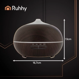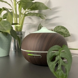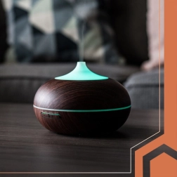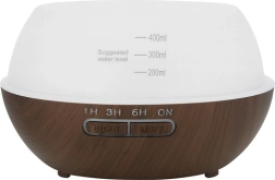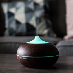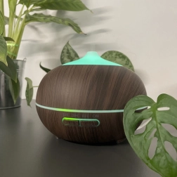 Eleganten difuzor združuje vlaženje zraka, aromaterapijo, ionizacijo in LED lučko. Ultrazvočna tehnologija razgradi vodo v fino meglico, ki izboljša udobje dihanja doma in v pisarni. Zaradi tihega delovanja je idealen za spalnico in otroško sobo.