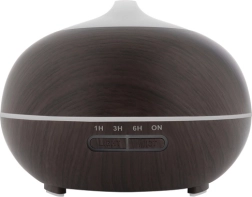 Praktičen daljinski upravljalnik in časovnik 1/3/6 h olajšata vsakodnevno uporabo. Izbirajte med 4 načini – velika ali mala megla, neprekinjeno ali prekinjeno delovanje – ter prilagodite vzdušje s LED osvetlitvijo. Del kompleta so 3 vodotopna olja za sproščujoče vonjave.