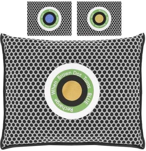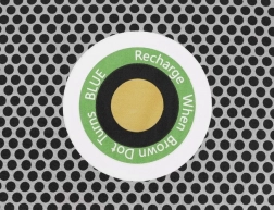 Na sredini je barvni indikator, ki jasno prikazuje stopnjo nasičenosti. Oranžna barva pomeni, da je absorber suh in pripravljen za uporabo; ob spremembi v modro ga je treba “napolniti” s sušenjem (npr. v mikrovalovni pečici). Tako se vlaga izpari in izdelek je spet pripravljen za večkratno uporabo – z življenjsko dobo do 3 leta.