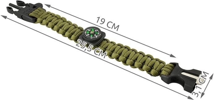 - 5 funkcij v enem: paracord vrvica, nož, kresilo, kompas in piščalka.