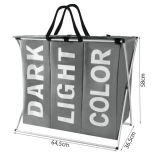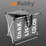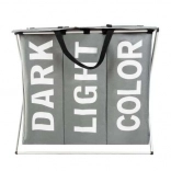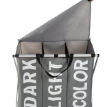 Praktičen trikomorni koš za perilo s trdnim kovinskim ogrodjem in tekstilnim ohišjem olajša vsakodnevno sortiranje. Zahvaljujoč predalčkom DARK, LIGHT in COLOR boste imeli perilo vedno pregledno razvrščeno. Notranja vodoodporna obdelava, pokrov z ježkom in udobni ročaji zagotavljajo čistočo, red in enostavno prenašanje vse do pralnega stroja.