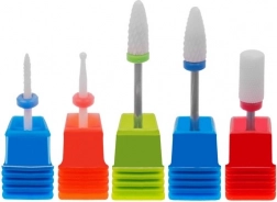 Set 5 keramičnih nastavkov je idealen za profesionalne salone in domačo nego. Keramika ne prenaša toplote, zato pri delu ne prihaja do neprijetnega pekočega občutka, hkrati pa je izjemno trpežna in učinkovita. Različne oblike in stopnje zrnatosti omogočajo natančno odstranjevanje materiala, mehčanje obnohtne kožice in glajenje površine nohta.