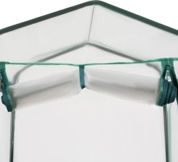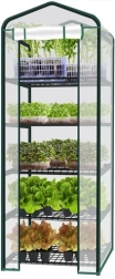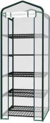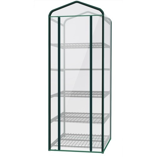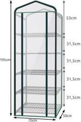 Kompakten rastlinjak s stabilno kovinsko konstrukcijo in 5 kovinskimi policami je idealen za gojenje sadik in zelišč na vrtu, terasi ali balkonu. Preprosta montaža, zaščita rastlin pred vetrom in pozebami pri tleh ter optimalna mikroklima zahvaljujoč trdno pritrjeni foliji zagotavljajo zdrav rast vaših rastlin.