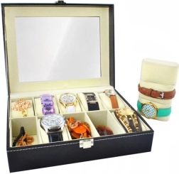 Organizator za ure in nakit je praktičen in stilski dodatek za vsakogar, ki želi imeti svoje dragocenosti na varnem in pregledno urejene. Izdelan z mislijo na detajle nudi čudovit videz in odlično funkcionalnost.
