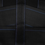 Širok hrbtni panel s protizdrsno strukturo zagotavlja enakomerno kompresijo in zanesljivo utrditev ledvenega dela pri vsakodnevnih dejavnostih.