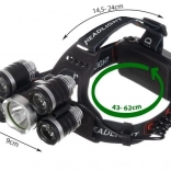 Zmogljiva naglavna svetilka s 5 LED CREE T6 diodami ponuja 4 načine svetenja, nastavljiv kot 90° in udoben elastičen trak. Napajanje zagotavljata 2 akumulatorja 6800 mAh, v paketu pa ne manjkata omrežni in avtomobilski polnilec – idealno za pohodništvo, kolesarjenje, domača opravila in nujne primere.