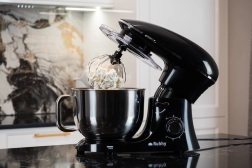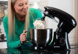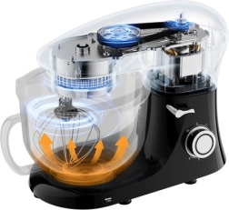 Ruhhy planetarni kuhinjski robot z robustnimi protizdrsnimi priseski zagotavlja stabilnost med delovanjem. Zahvaljujoč kovinskemu planetarnemu sistemu in trem različnim nastavkom - kavelj, metlica in mešalec - lahko popolnoma obdelate vse sestavine in dosežete optimalne rezultate.