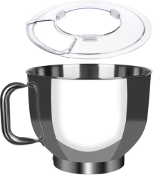 Robot ima veliko nerjavečo posodo s prostornino 6,2 litra, ki je opremljena z močno ročajem in zaščitnim pokrovom proti špricanju, kar olajša delo in ohranja kuhinjo čisto.