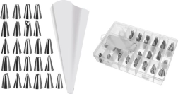 Naprava je narejena iz visokokakovostnih materialov, kot so nerjaveče jeklo in ABS, kar zagotavlja dolgo življenjsko dobo. Del paketa je tudi dekorativna slaščičarska vrečka s 24 nastavki, ki širi možnosti ustvarjalnosti v kuhinji.
