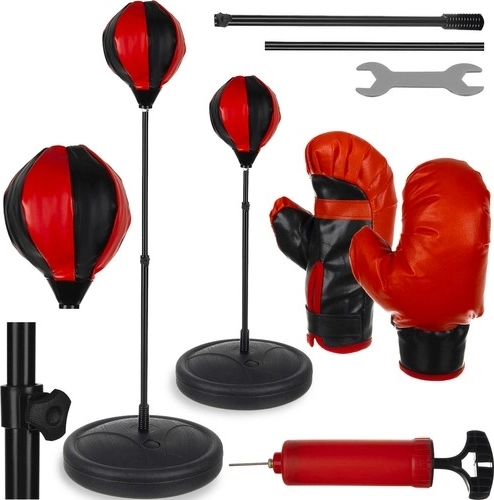 Komplet vsebuje tudi črpalko z iglo za enostavno napihovanje tako boksarske žoge kot tudi žog za druge športe. Celoten dizajn kompleta v rdeče-črnih barvah daje igrački eleganten videz, ki bo očaral vsakega malega športnika.