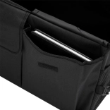 Praktičen organizator za prtljažnik pomaga ohraniti vse na svojem mestu – od nakupov in orodja do opreme za izlete. Trpežna tkanina Oxford in ojačane stene ščitijo vsebino ter preprečujejo njeno premikanje med vožnjo. Zahvaljujoč premišljeni razporeditvi z enim velikim in dvema manjšima predelkoma ter stranskimi žepi boste imeli vse hitro pri roki.