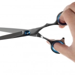 Modri vložki za prste, opore za prste in gladek člen z modrim vijakom zagotavljajo udobje, stabilnost in natančnost tudi pri daljšem striženju.