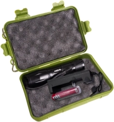 Robustna svetilka z močjo 5 W uporablja diodo CREE in natančno izbočeno lečo za dolg doseg do 200–300 m (odvisno od pogojev). Zahvaljujoč stopenjsko nastavljivemu zoomu zlahka preklapljate med širokim razpršenim snopom in ozkim, koncentriranim žarkom.