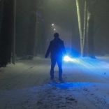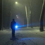 Dioda CREE 5 W z belim svetlobnim spektrom in kakovostna leča zagotavljata svetel snop z dosegom do 200–300 m za varnost v temi.
