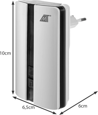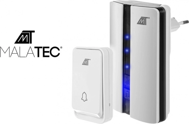 SPECIFIKACIJE- Bela barva; napajanje zvonca: omrežno; gumb napajanje: brez baterij; 3-stopenjsko upravljanje glasnosti; glasnost: 90 dB; 51 polifonskih zvokov na izbiro; doseg: 150 m; vodoodporno: IP44; povezovanje sprejemnikov: da; celotno zmanjšanje glasnosti: da; dimenzije zvonca: 8,5x5x2 cm; dimenzije sprejemnika: 10x6,5x6 cm; teža: 0,132 kg; teža v paketu: 0,177 kg.