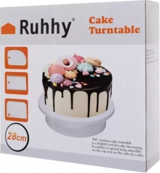 Vrteče tortno stojalo Ruhhy je idealen pomočnik za vsakogar, ki ga zanima profesionalno dekoriranje tort. Izdelano je iz kakovostne plastike, ki zagotavlja vzdržljivost in enostavno čiščenje. To stojalo ne le olajša delo pri dekoriranju, temveč tudi deluje elegantno kot podstavek za vaše deserte.